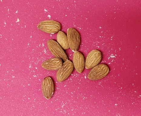 아몬드 반 줌도 칼로 날게 다져주세요.