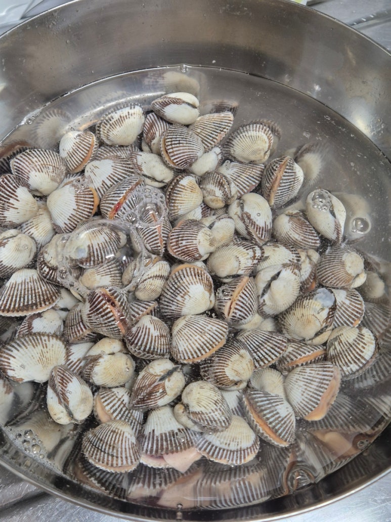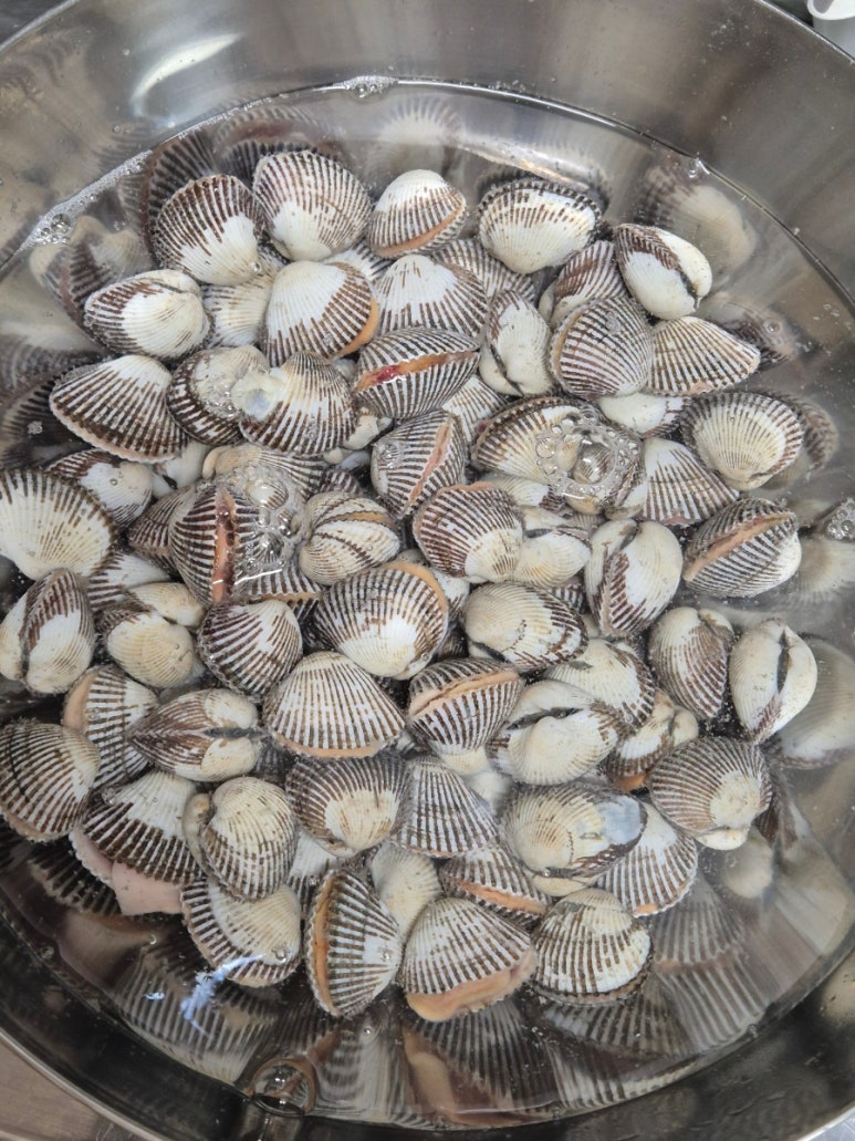 1. 큰 볼에 꼬막을 모두 넣고 물을 가득 채운 뒤,