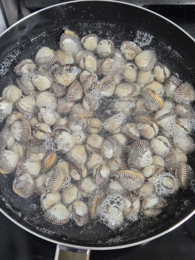 5. 물이 팔팔 끓으면 강불에서 1분 정도만 꼬막을 삶아줍니다.