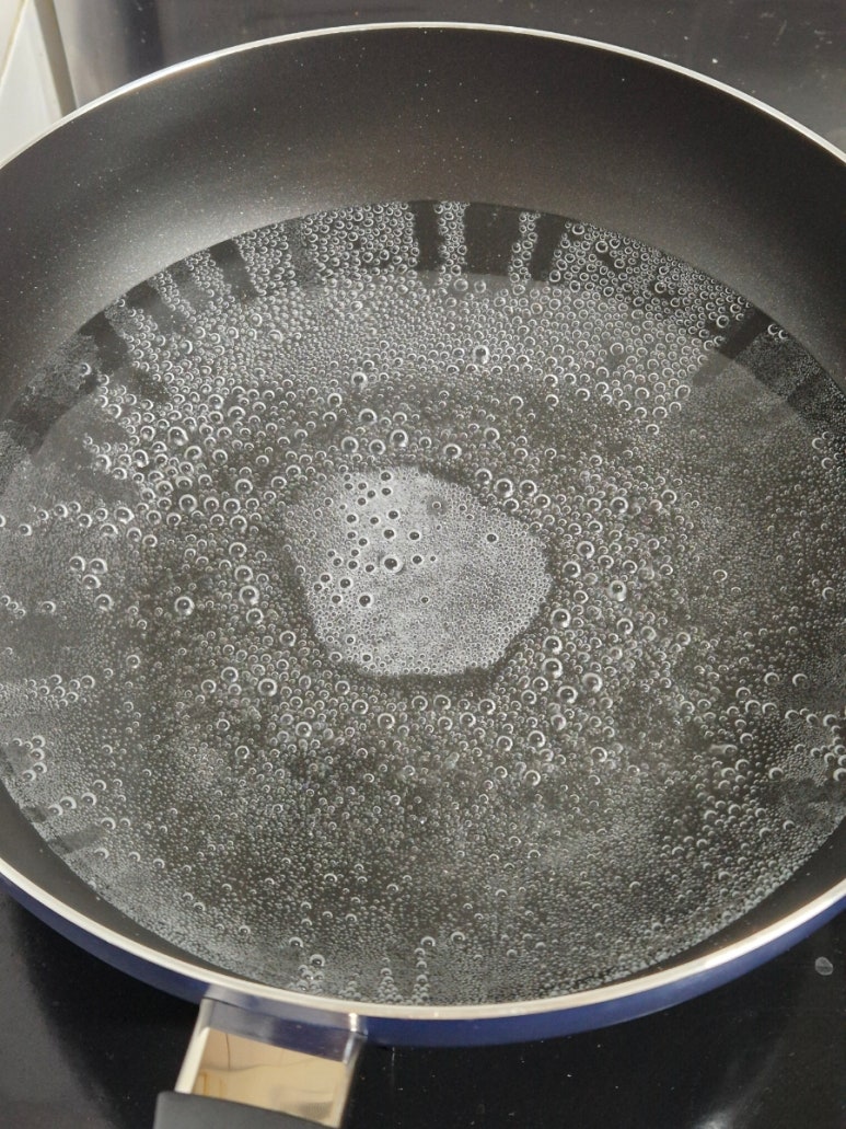 4. 냄비에 물을 가득 붓고 소금 반 스푼 정도를 넣어 끓여주세요.