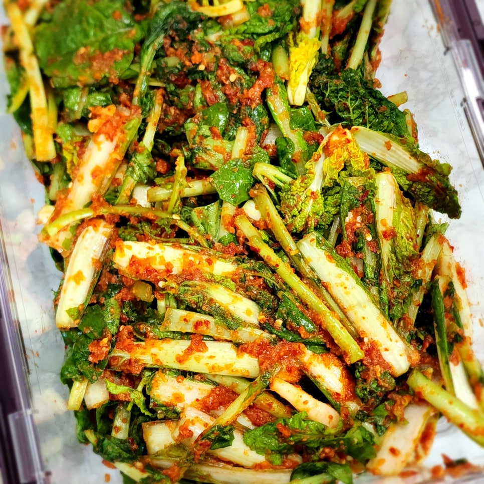 양념에 버무린 열무김치는 김치통에 담아서 실온에 하루 정도 두었다가 냉장고에 넣고 드시면 맛있답니다
