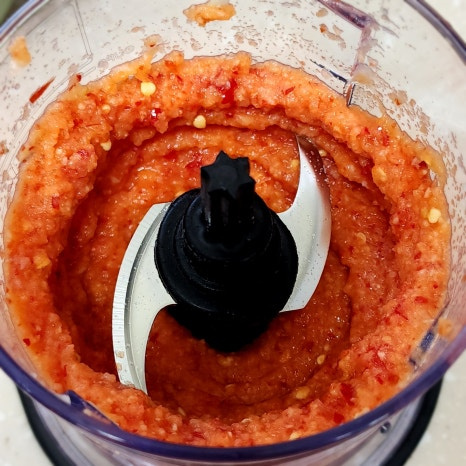 위 양념재료들을 믹서기에 넣고 모두 갈아 주세요 삶은 감자도 같이 넣어서 갈면 됩니다