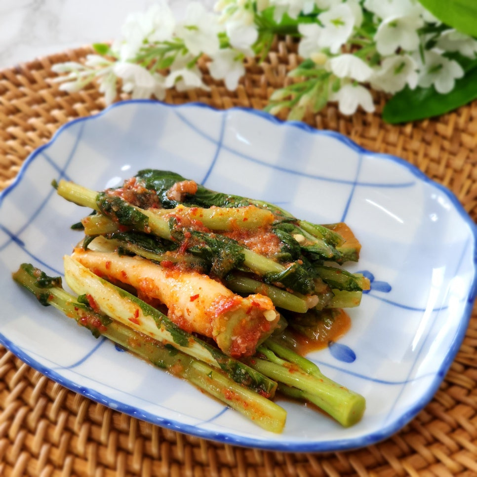 절인 열무와 얼갈이배추는 차가운 물에서 한 번 헹궈준 다음 채반에 밭쳐 물기를 빼 주세요