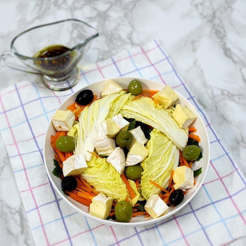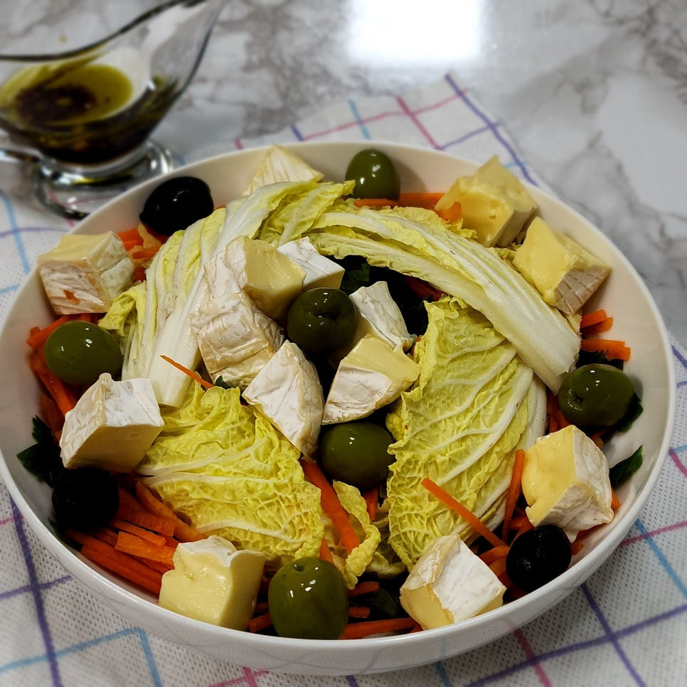 며칠 전 찹스테이크와 봉골레 파스타를 만들면서 함께 먹을 샐러드도 있으면 좋겠다는 생각에 냉장고 속 재료들을 활용해서 만든 알배추 브리치즈 샐러드예요 샐러드를 먹으면서 딸내미와 저는 한 끼 식사로 이것만 먹어도 너무 좋을 것 같다고 했던 샐러드랍니다 그럼, 풍미 좋고 맛있는 알배추 브리치즈 샐러드 레시피 지금 바로 보여 드릴게요~^^