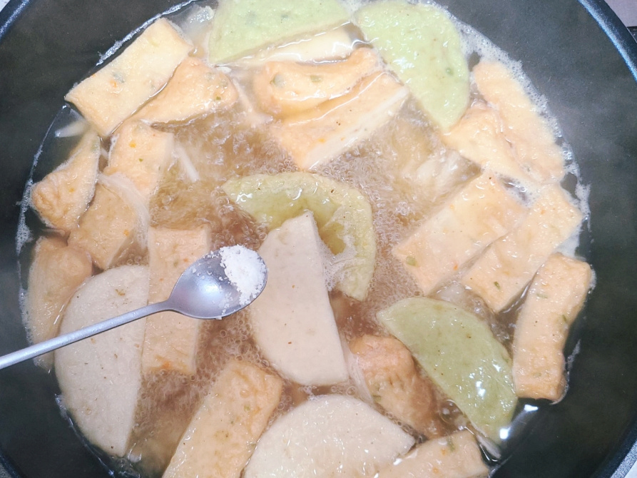 종합어묵에는 간단하게 만들수 있는 가루분말이나 소스가 들어있는데 짝꿍은 제가 직접 오뎅탕 소스를 넣고 끓인게 맛있다고 하여 직접 어묵탕 국물을 동전육수와 간장으로 만들었어요.
