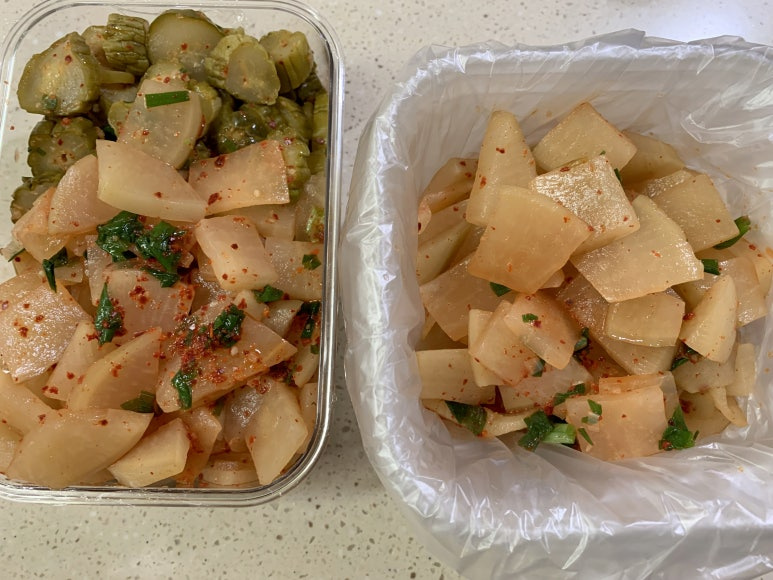 여름에는 오이지무침과 냉국을 먹었고, 겨울에는 이 짠지냉국과 무침을 먹었습니다.