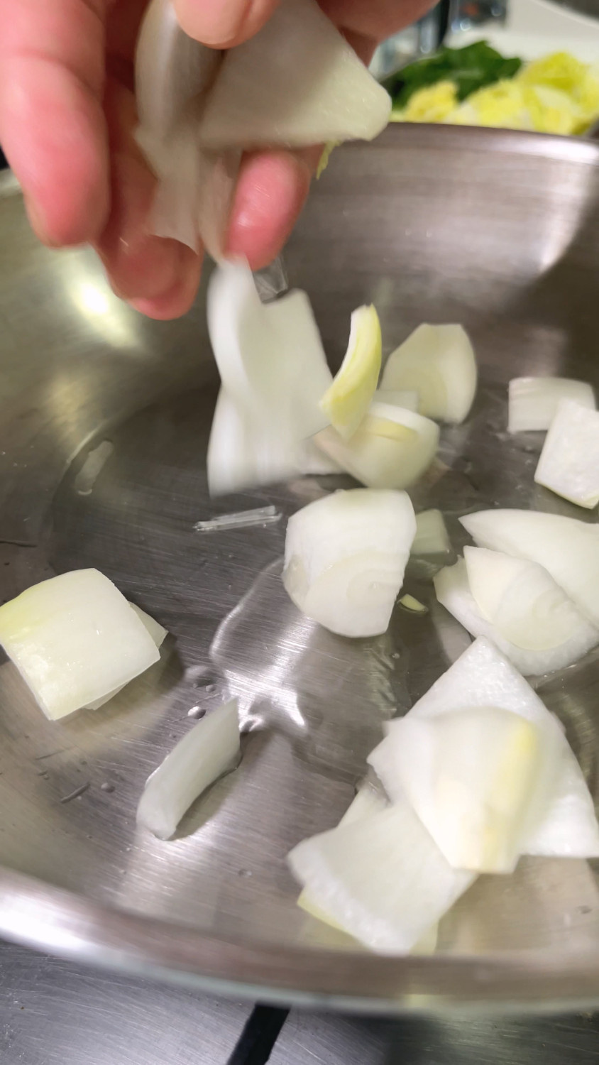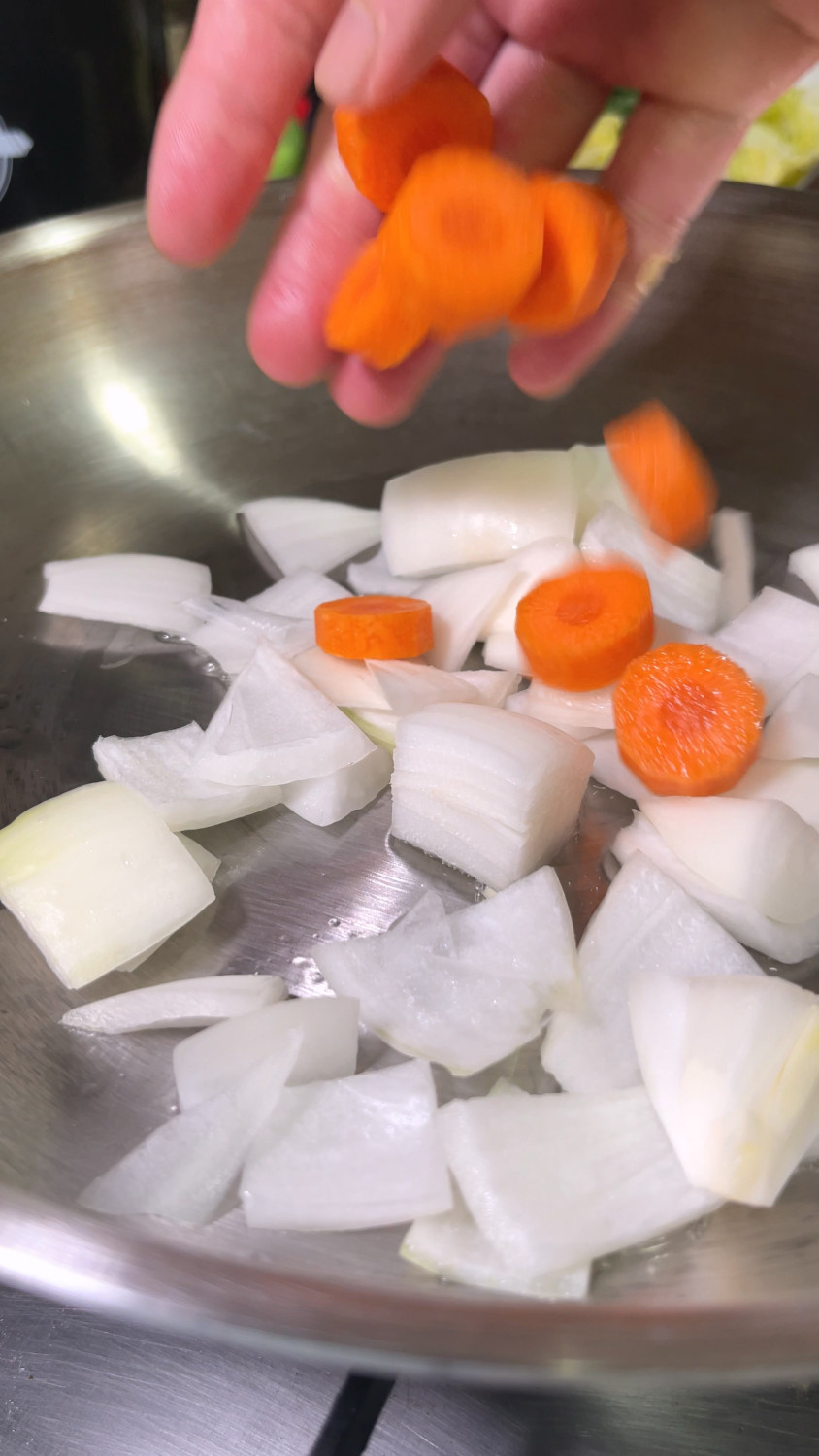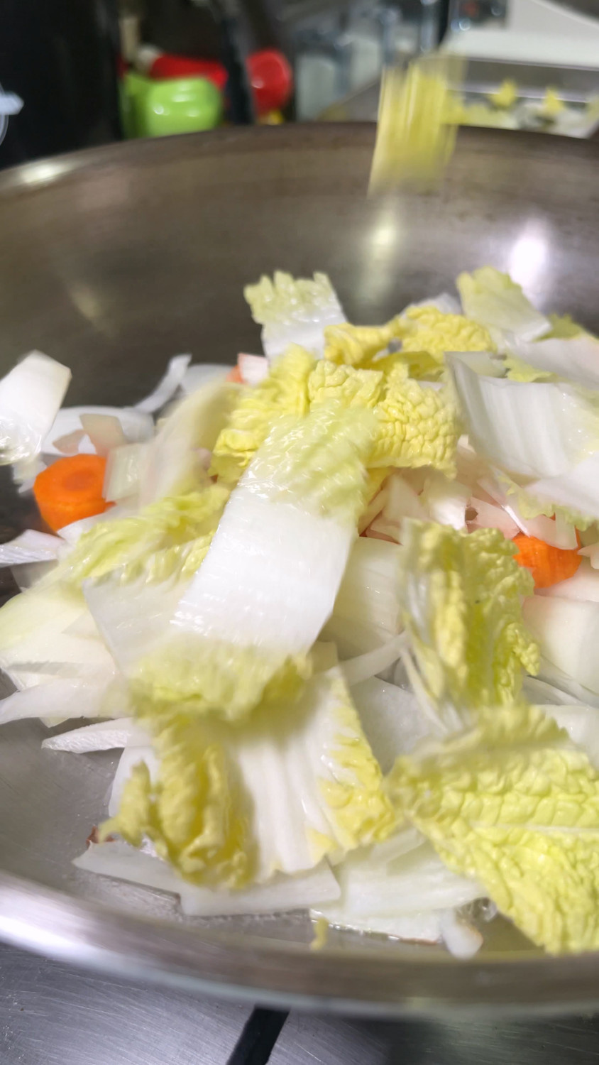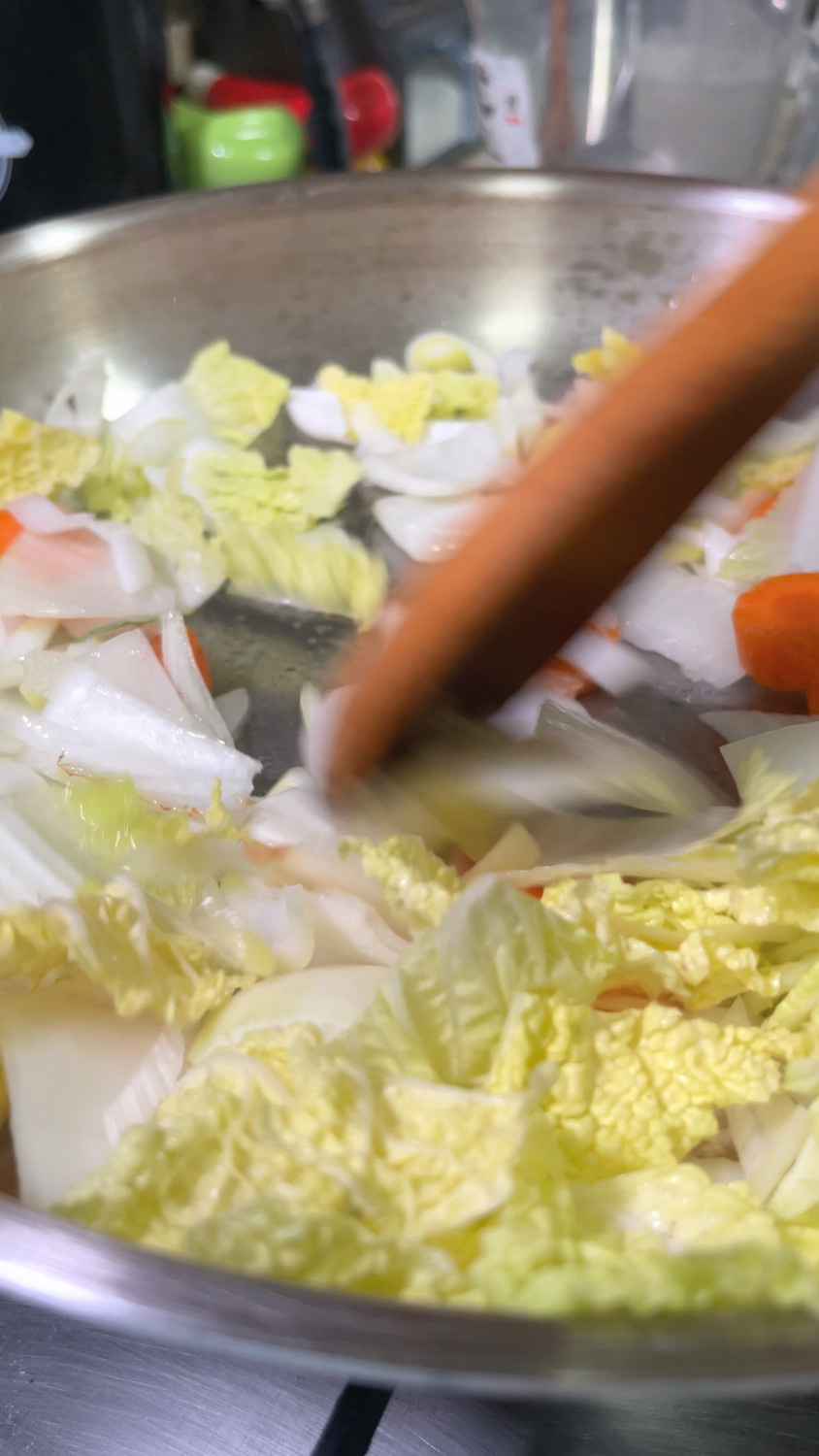 삶은돼지곱창 500 g , 양파 1/2 개 , 당근 1/3 개 , 대파 1 대 , 알배추 1 줌 , 부추 1 줌 , 청양고추 1 개 , 깻잎 10 장 , 우동사리 1 개 (당면)