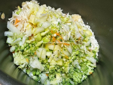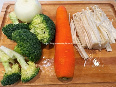 양파 1개 브로콜리 1대 당근 1개 팽이버섯 1봉지 버섯 적당히