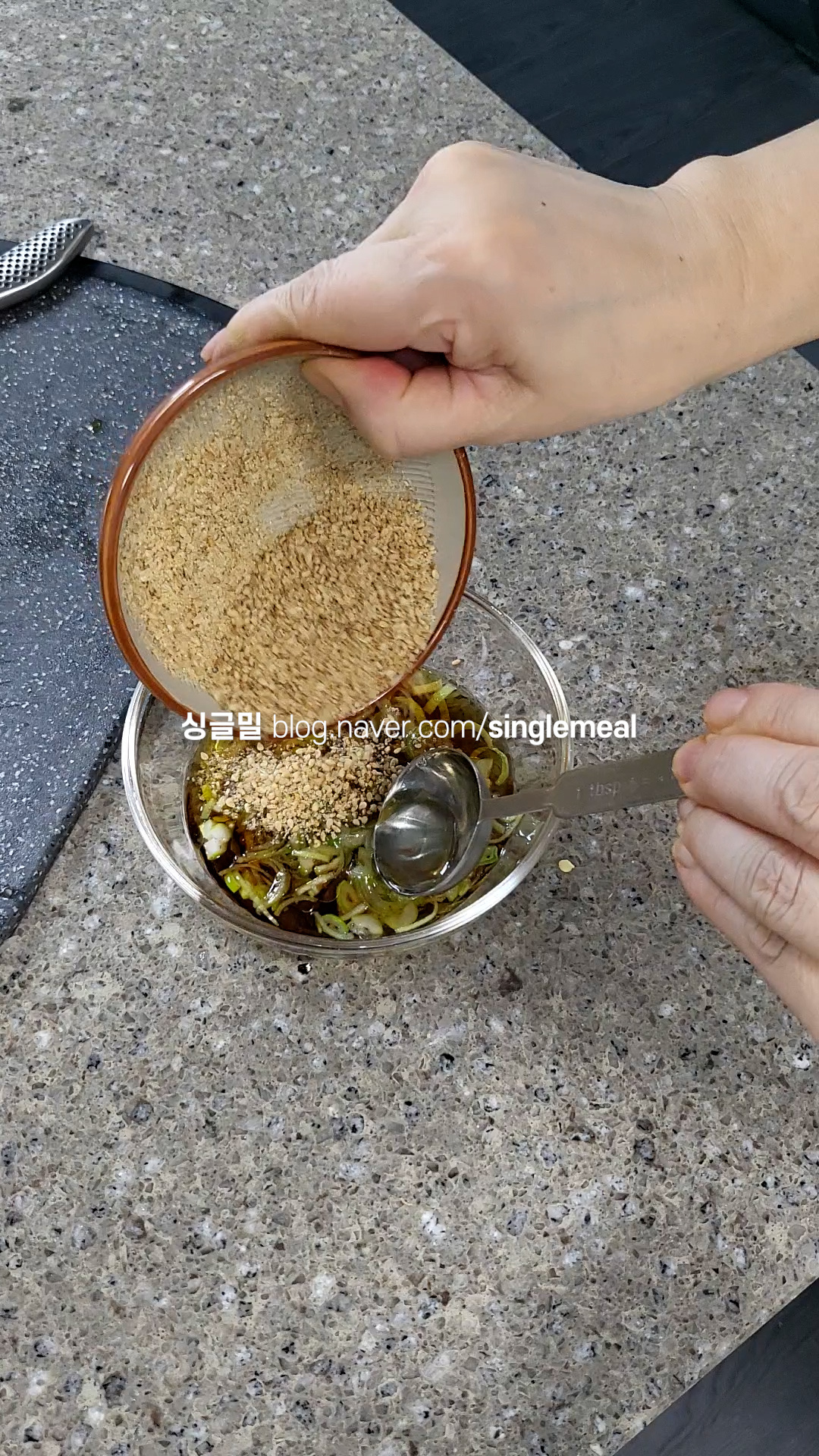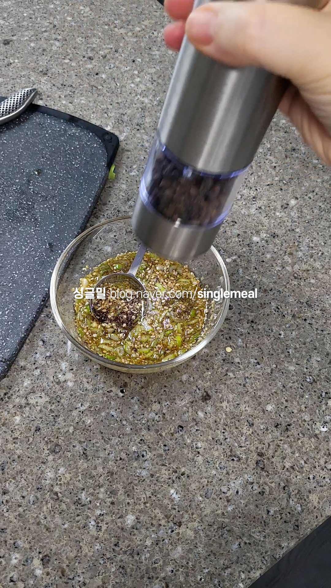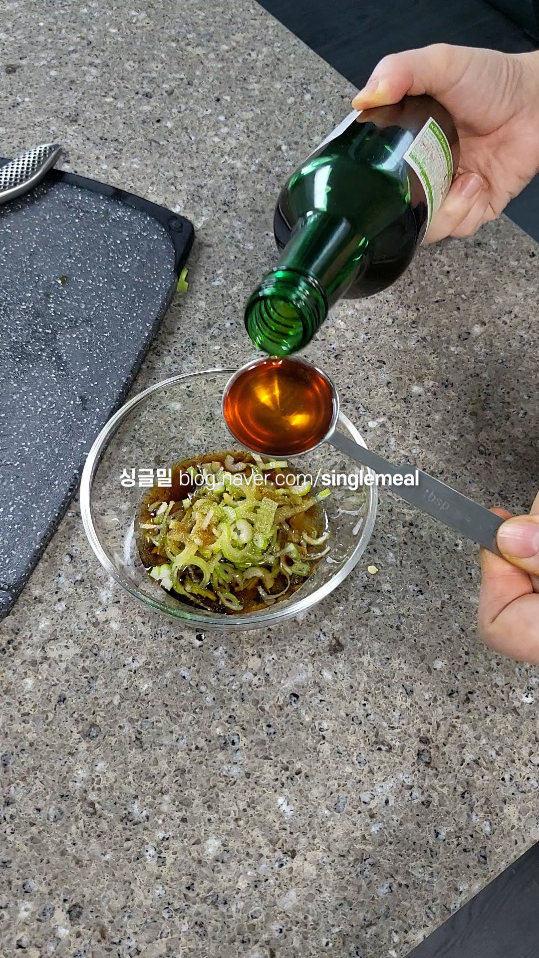 잡채맛에서 아주 중요한 부분을 차지하는 양념장인데, 분량의 재료를 넣고 잘 섞어 만든다.