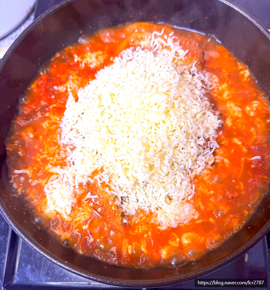 모차렐라 치즈 듬뿍 올립니다.