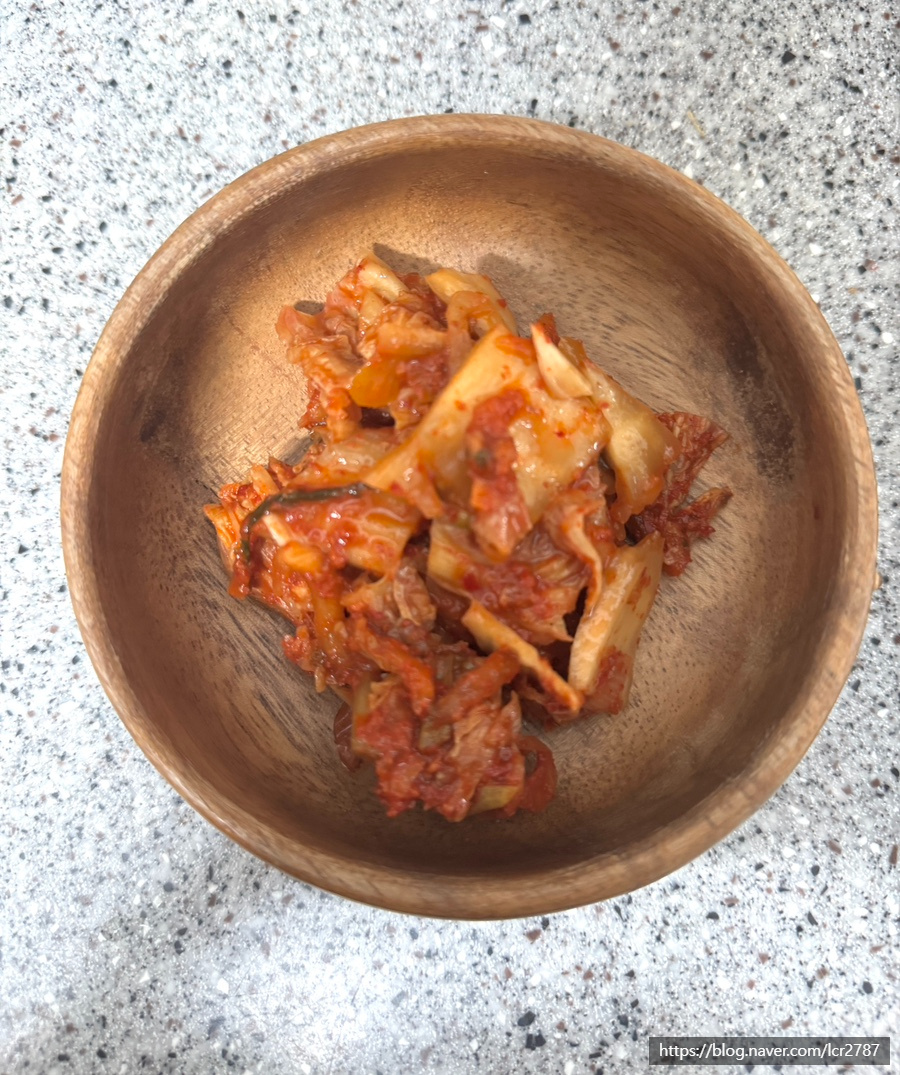 김치는 1컵 한입 사이즈로 잘라주세요.