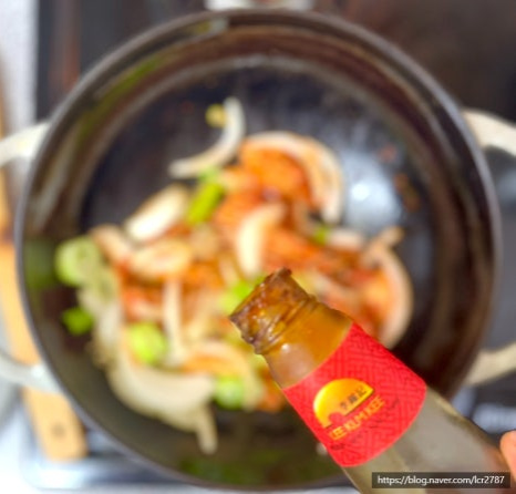 설탕 1스푼 , 진간장 1스푼 , 고춧가루 1스푼 , 굴 소스 1스푼 , 치킨스톡 1스푼 , 물 2컵