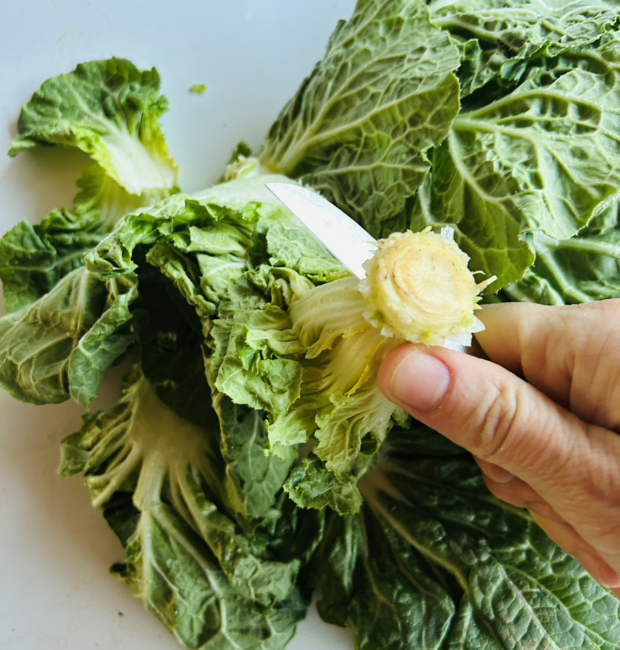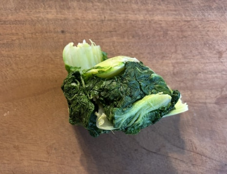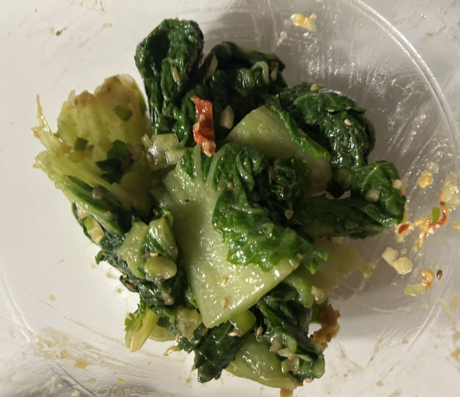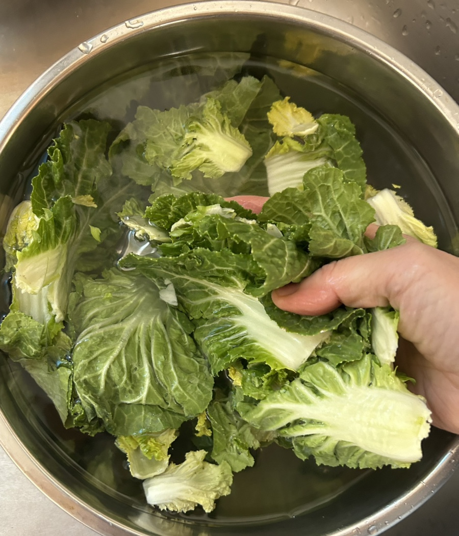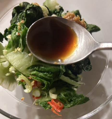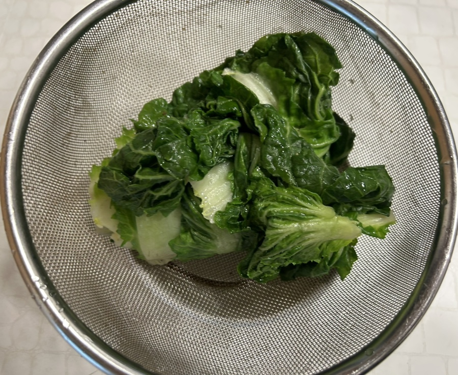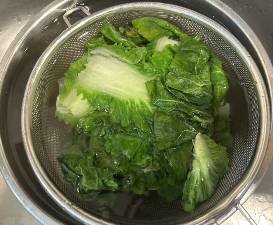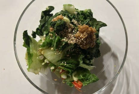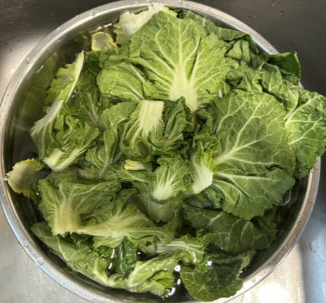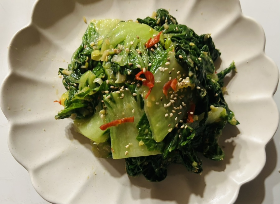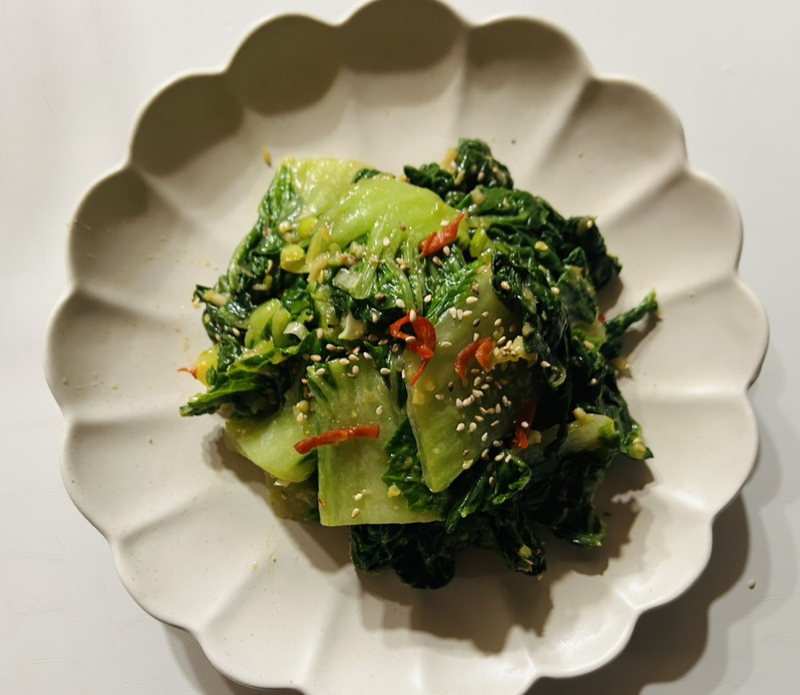 달큰하고 부드러우면서도 아삭한 식감이 약간 살아 있는 데친 봄동이 너무 맛있어요.