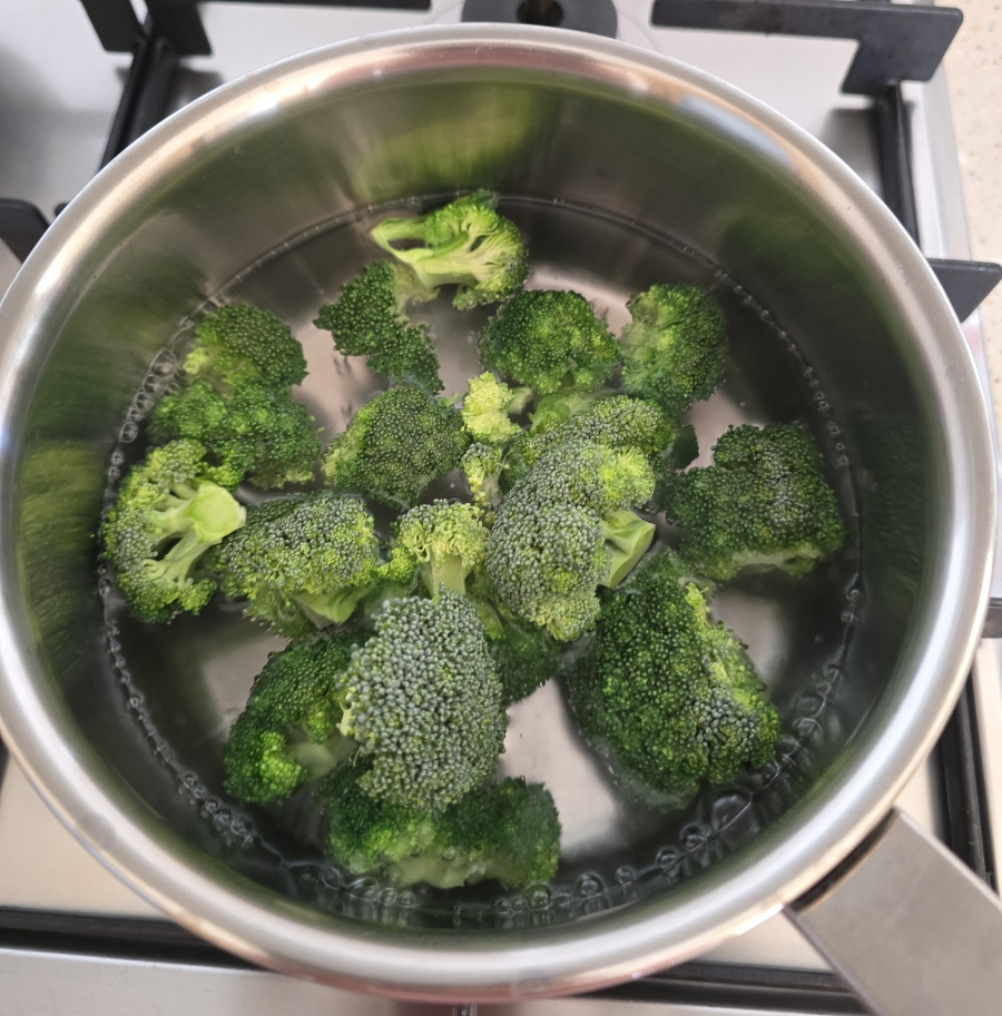 브로콜리는 끓는 물에 넣고 딱 10초만 삶고 얼른 찬물에 헹구어 주세요.