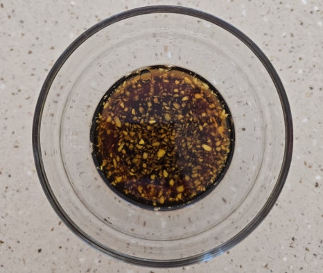 진간장, 올리브유, 식초 2T/ 식초 1T / 다진 마늘 0.3T/ 후추 약간