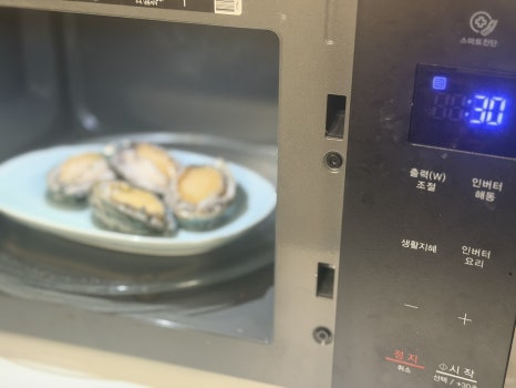 그릇에 전복과 물 넣고 전자레인지 30초,