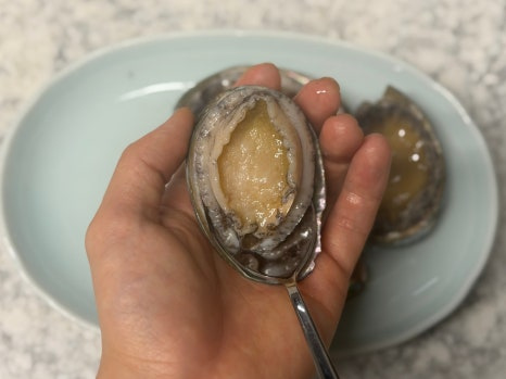 전복이 익어서 쉽게 껍질에서 살만 떼어낼 수 있어요.