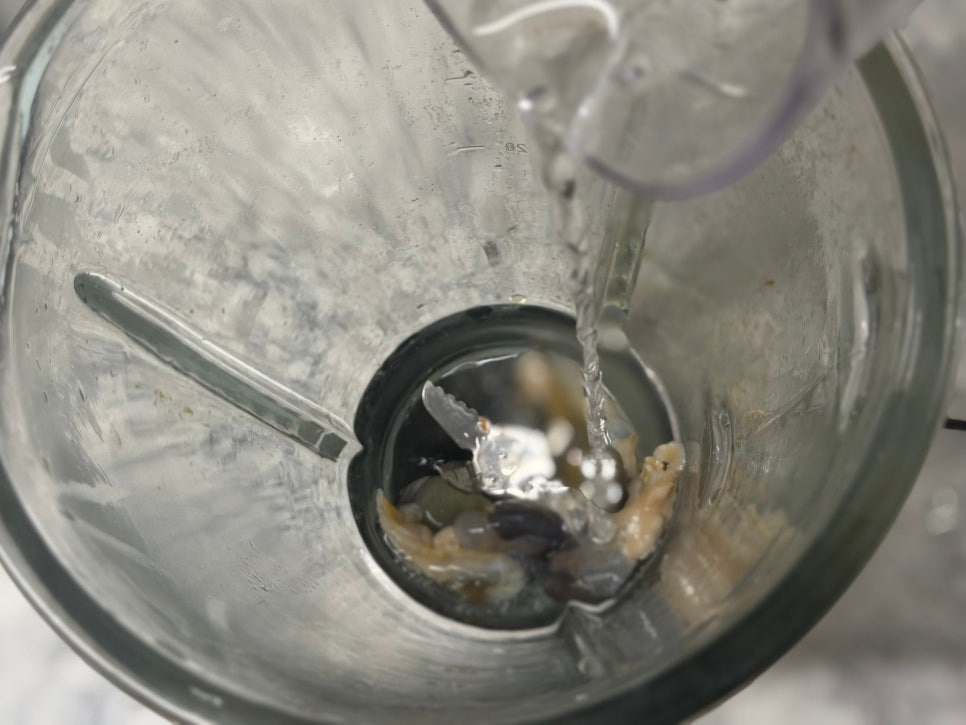 믹서기에 전복내장과 약간의 물 넣어