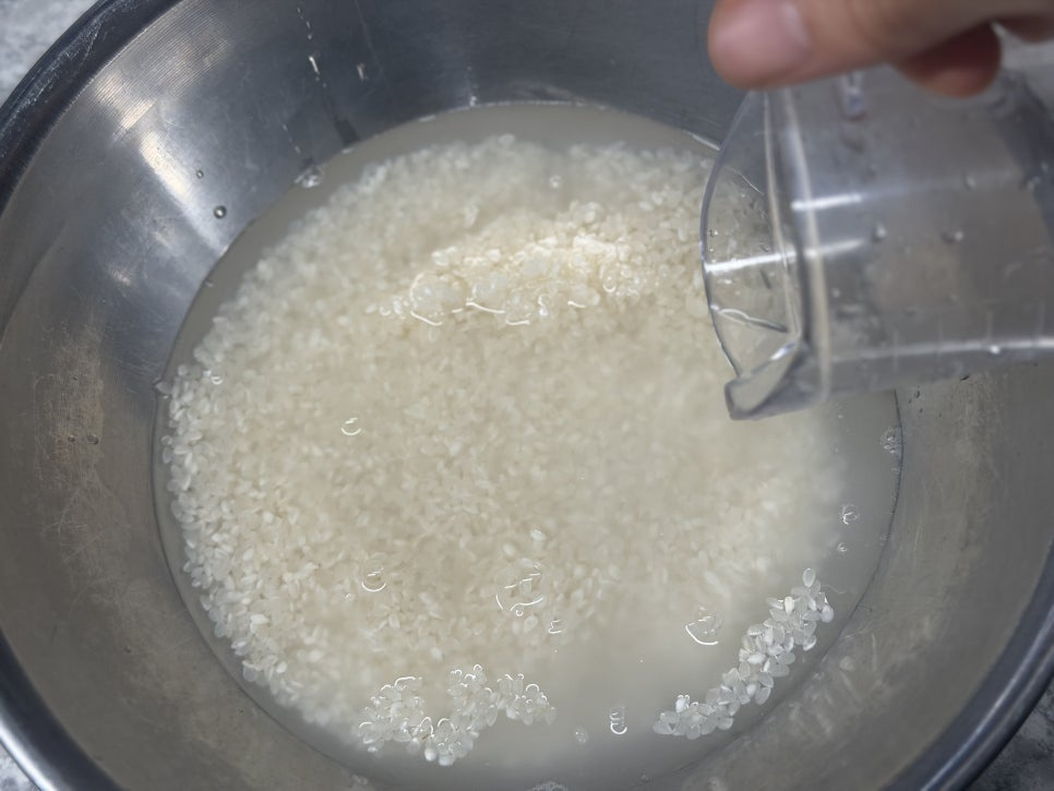쌀과 물 비율 1:1로 30분 불리기