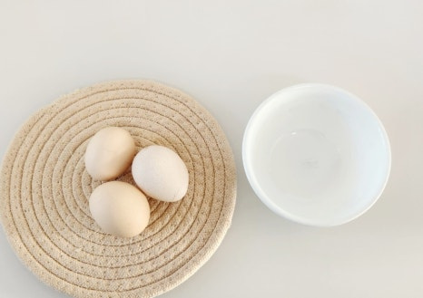 볼에 계란 3개를 깨서 넣고 소금 1/3t를 넣어 주세요.