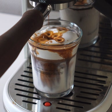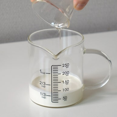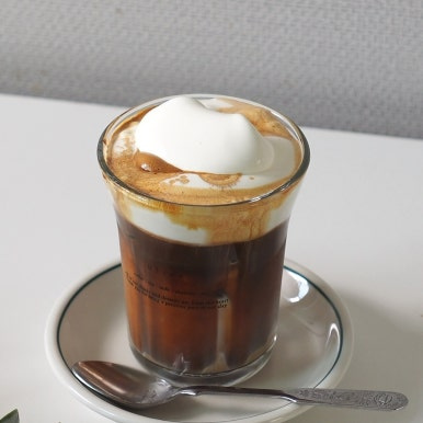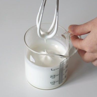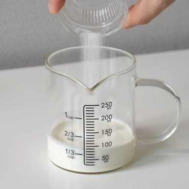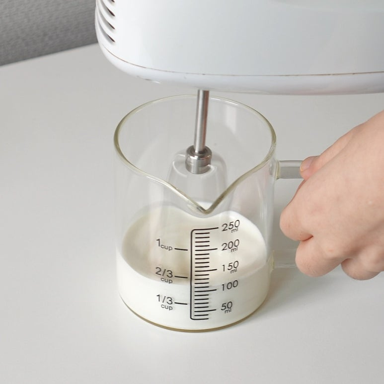동물성휘핑크림 70g, 아몬드시럽 8g, 설탕 4g