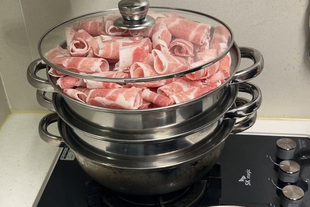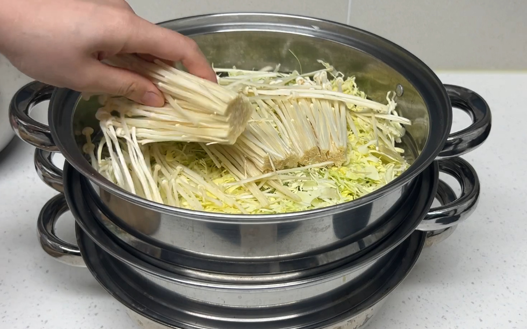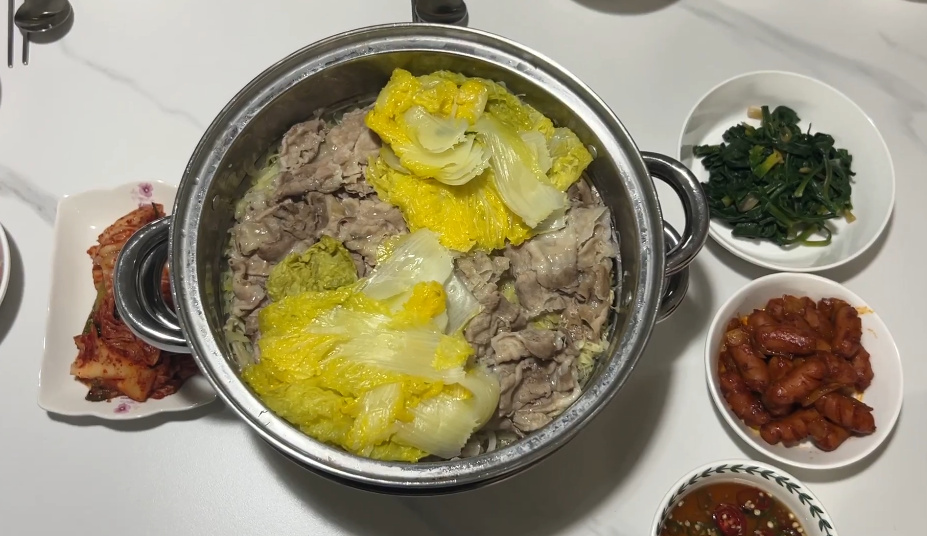 배추와 양배추에 대패삼겹을 올려 쪄내기만 하면 완성되는