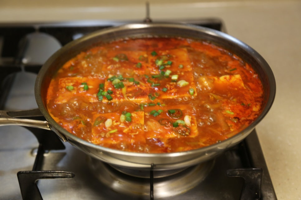 두부 한 모, 매콤양념장, 물 600ml