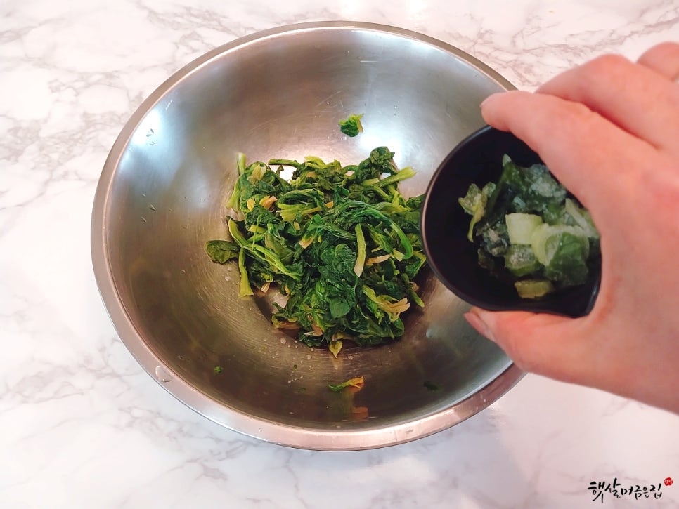 그냥 데쳐서 식힌 후 물기를 짜서 볼에 담아 주세요.