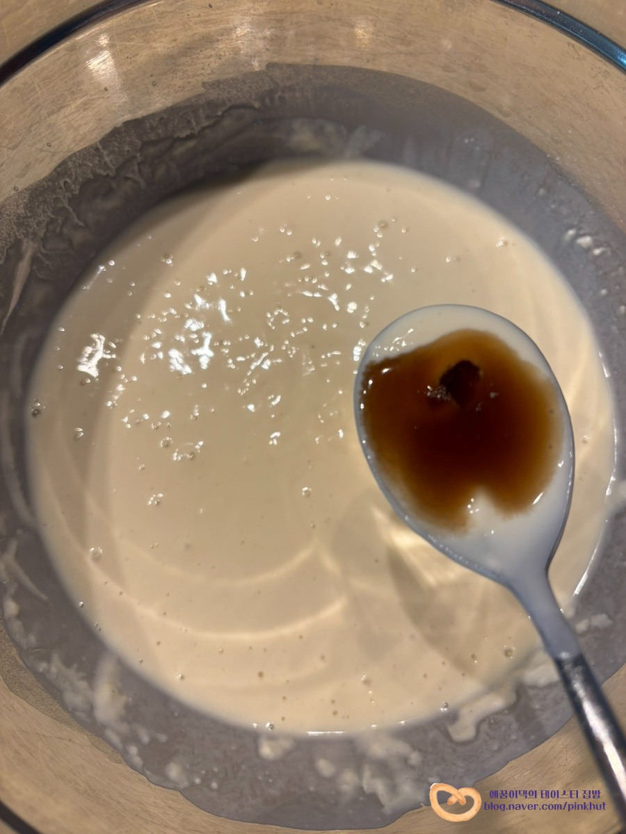 골고루 저어주고요, 반죽 농도는 주르륵 흐르는 정도로 맞춰주시면 됩니다