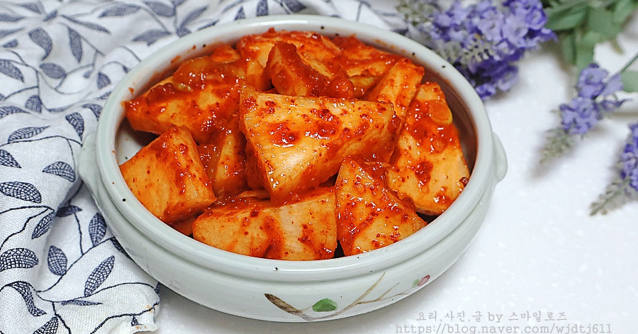 찹쌀풀 안쑤고 밥으로 하니 편하네요 익히지 않아도 무가 넘 맛있어요 양념을 좀 여유있게 해서 양념이 위에 많이 있네요 레시피 감사합니다