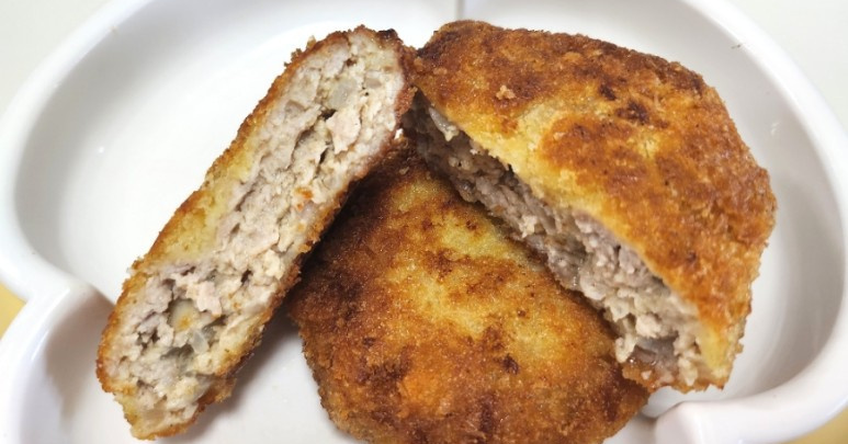 170도에 튀김용 냄비에 4분&뒤집고 4분 총 8분 튀겼어요. 미국에 살아서 다짐육 대신 마트에 파는 햄버거용 그라운트비프 사용했는데 남편이랑 남편 친구들이 엄청 좋아하네요. 겉은 바삭하고 너무 기름지지 않아요. 속도 촉촉하고 맛있었어요.