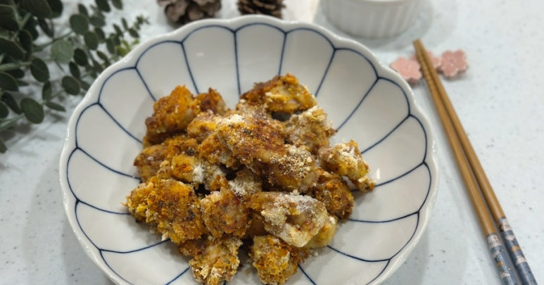 닭고기는 우유에 10분 정도 재워주고 하면 잡내도 없고 훨씬 부드러워요. 고기에 소금 후추로 밑간 조금 해주는게 좋고 오븐이나 에프에 넣기 전에 반죽이 좀 젖을 정도로 스프레이로 물 뿌려주면 바삭하게 됩니다. 파는 고추바사삭 맛은 정확히 안나지만 집에서 해먹는 치킨치고 충분히 만족스러운 퀄리티에요.