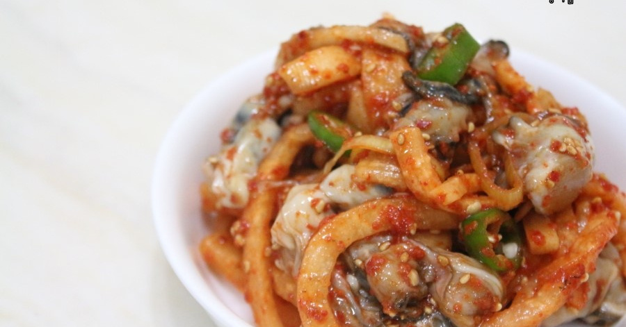 굴이 제철을 맞이하여 굴전과 굴무침을 만들어 보았습니다. 레시피따라 굴무침 요리를 했습니다. 레시피 감사합니다~