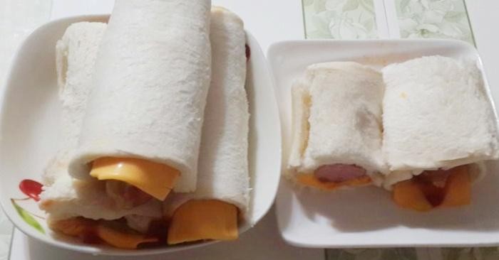 소세지랑 식빵 사이즈가 맞지 않아 잘 안 말아졌지만 맛은 좋아요