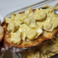 전 바게뜨 살짝 구워서 올려먹었어요^^