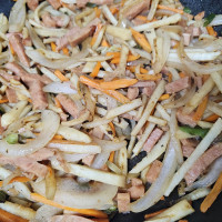 저는 이 레시피 양념에 감자 생략하고 멸치육수 안쓰고 쌀뜬물 넣고 자작하게 끓였는데도 맛있었어요 고기를 미리 볶아서 더 맛있네요 레시피 감사합니다