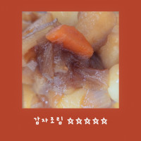 나중에할때참고용으로.. 감자6개 간장6굴소스1매실1 참치액젓2 설탕6 물종이컵으로4 마늘 고춧가루는나중에 깨랑참기름도 나중에 물이한강이라 저는 뚜껑덮고끓여더니 마니 으깨지네요 지금은걸죽해지긴했는데 짠맛은없고 달기만했는데 저기넣은거에서 조금씩 더 추가하니 맛있어요