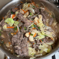 집들이 음식으로 했어요 불고기전골은 처음이라 걱정했는데 덕분에 성공적이었답니다~ 저는 레시피에서 추가로 갈아만든배 음료도 조금 넣었어요~ 짱짱 최고예요~!