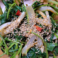 나물을 다 무치면 뭉쳐진 느낌이 들죠. 이럴 때 한 줌 집어 살~짝 털어준 다음, 접시에 높이 쌓아주시면 보기 좋답니다.