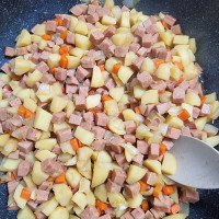 물엿이 없어 설탕으로 했는데도 꽤 괜찮았어요! 시간도 그리 소요되진 않아서 좋았고, 감자 데친 물로 햄 데치는 부분에서 감탄했습니다ㅋㅋㅋ 좋은 레시피 감사해요~~