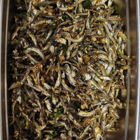 불순물제거위해 멸치150g을 물에 한번살짝 넣었다가 빼주고 기름없이 한차례 물기사라질때까지 볶은후에 레시피대로 해서 먹었어요 멸치볶음할때마다 열어서보는 좋은 레시피입니다
