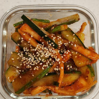도라지 굵은소금에 바락바락 씻어주고 오이도 소금에 절여서 물기 꼭 짜주고 양념을 고추장 1, 고춧가루 3, 나머지 양념들은 1스푼씩 더 추가했어요 매콤 새콤하게 맛있네요 레시피 감사해요 ㅎㅎ