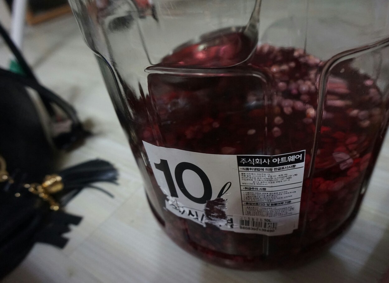 자기가 담근 오미자주에 잘 뜯더니 혼자먹으니 맛없다고 투덜...! 대든지 말든지.ㅎ