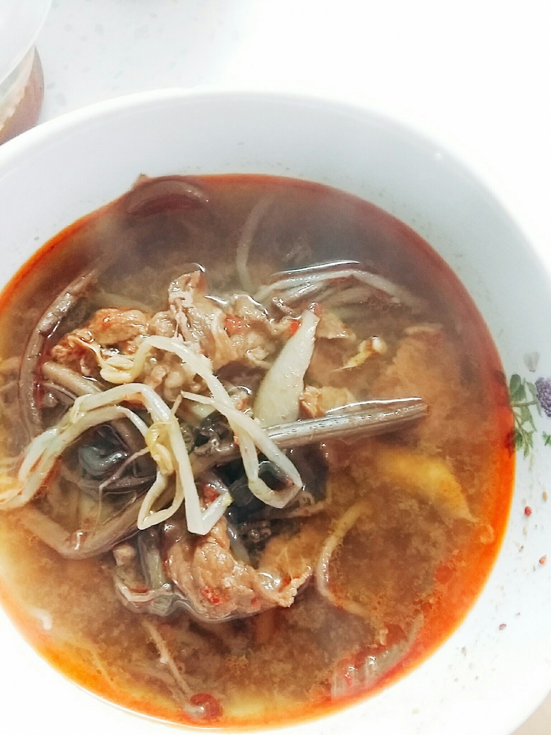 육개장데우고 있는반찬 다 꺼내서 아침먹여요