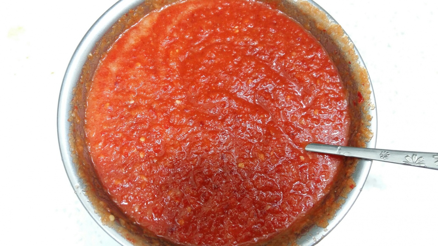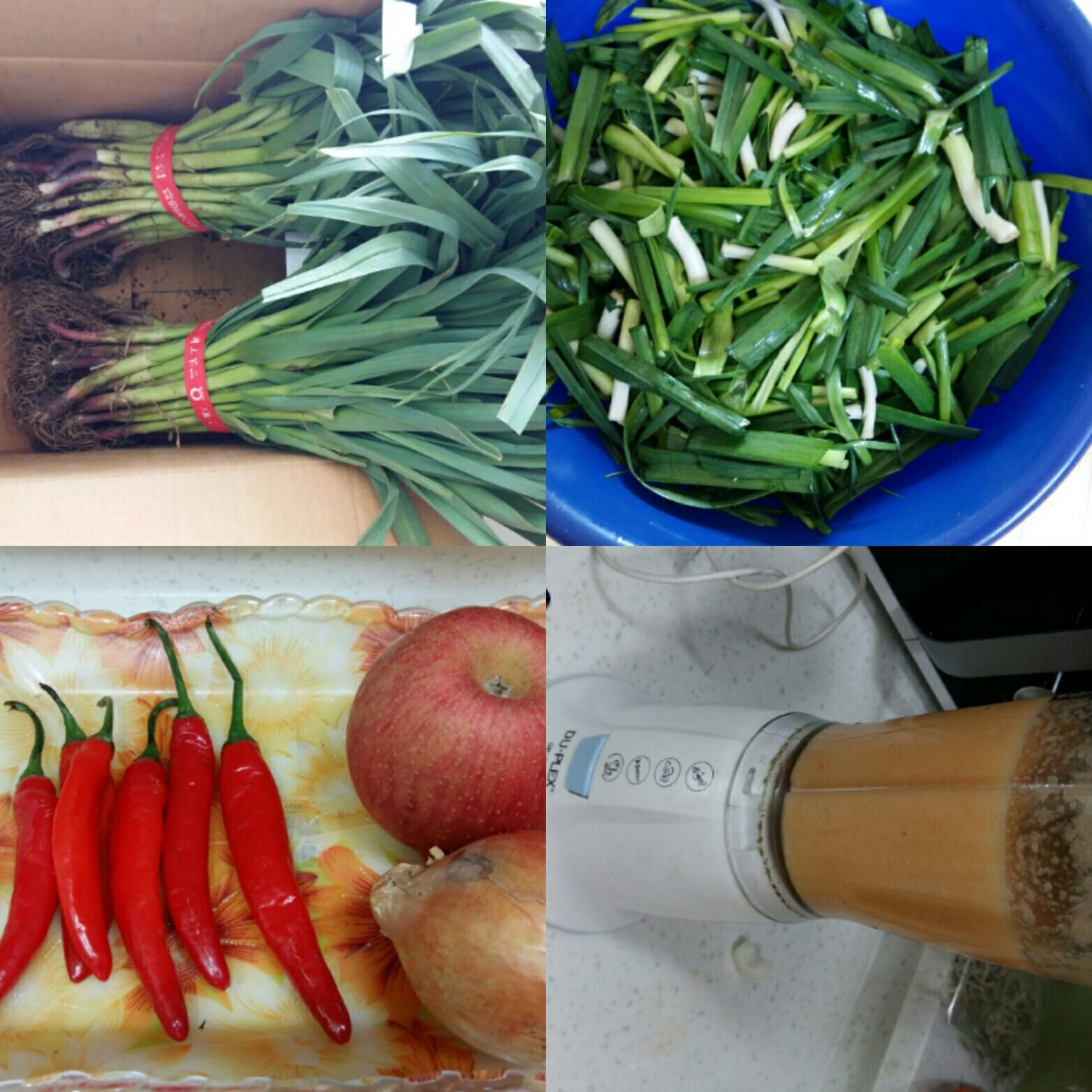 냉동실에서 김치양념해놨던거 꺼냈더니 조금모자라서 사과. 양파. 홍고추 넣고