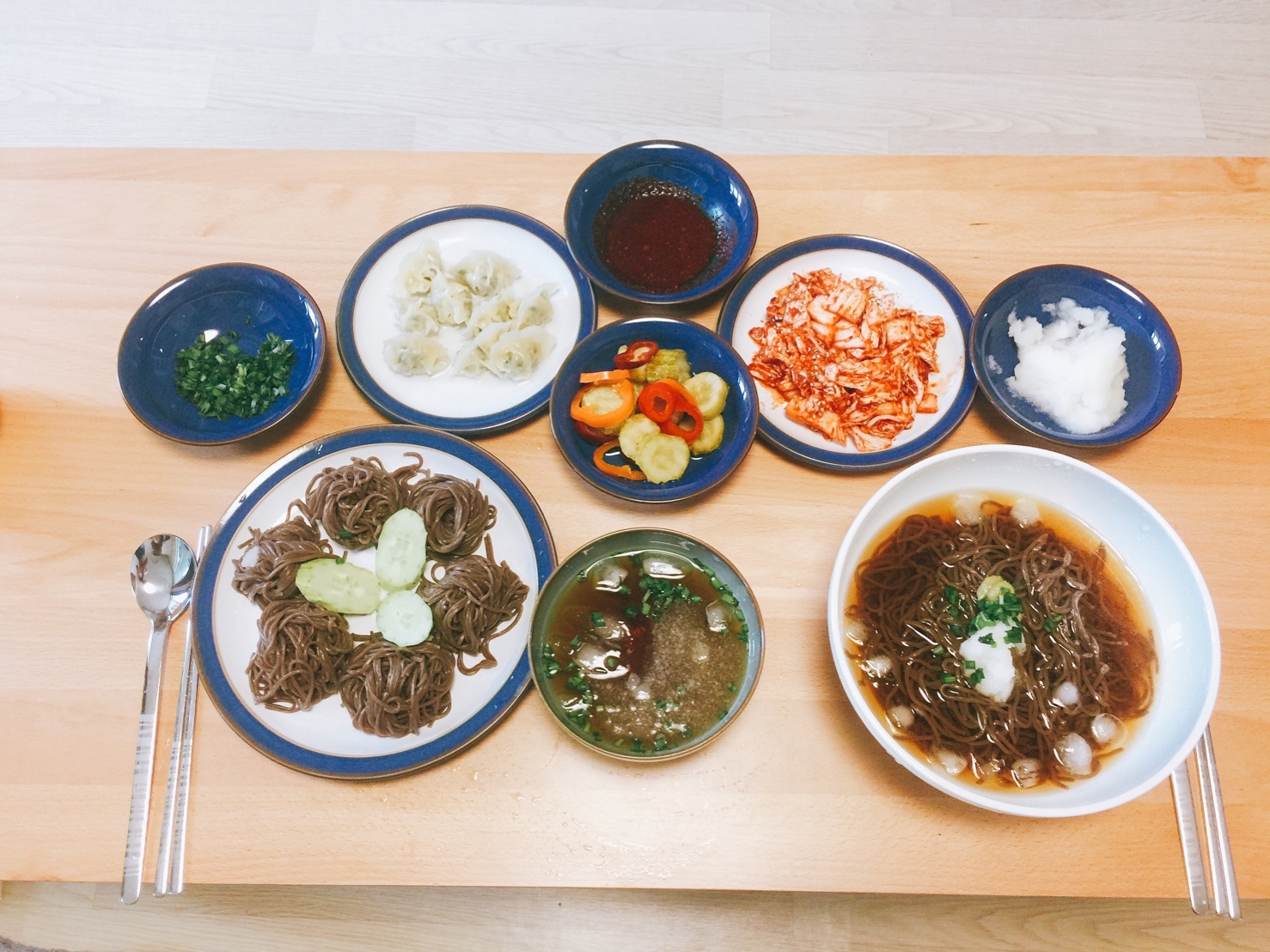 퇴근하고 집에와서 배추겉절이 무치고 메밀면 삶아서 냉모밀 국수 해먹었어요 ㅎㅎ 간단하고 사먹는것만큼 맛있어요 ㅎㅎ
