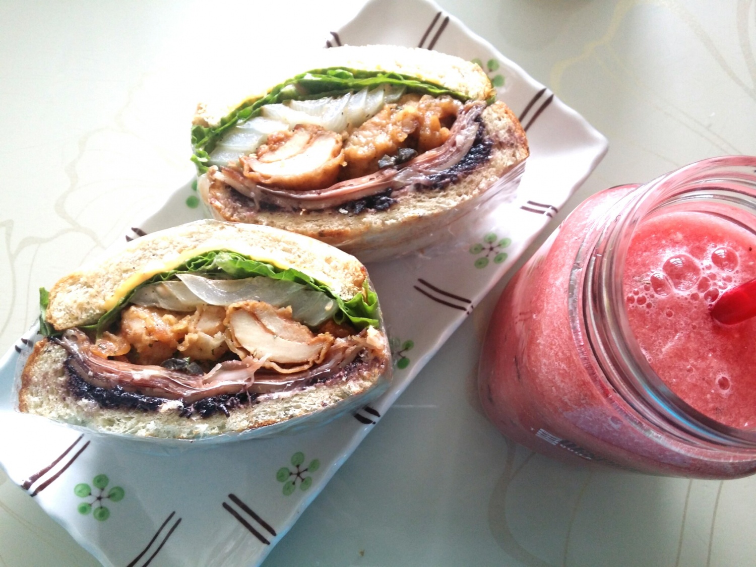 데리야끼소스치킨 샌드위치에 수박쥬스...