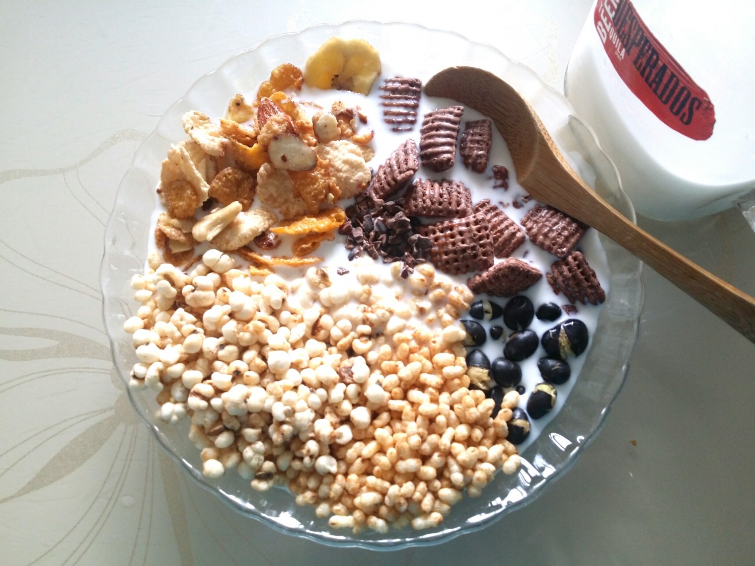 시리얼: 현미, 율무, 서리태, 코코아닙스, 아몬드, 바나나칩, 크린배리, 첵스, 코코넛슈가, 코코넛가루, (더는 못 적겠어서 나머지 생략)~~ㅎㅎ