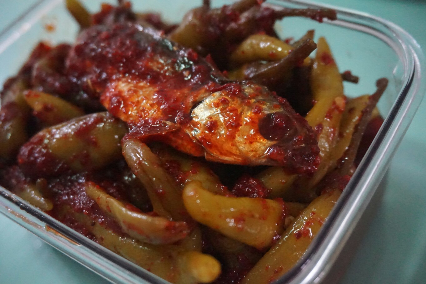 안 마늘쫑에 밥먹구 싶다. 고추무침엔 젓갈이룸은모야?벤댕이인가?