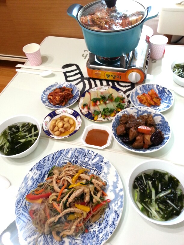 잡채에 고기도 많고 갈비찜도보이고 탕이뭐였을지 궁금하네요ㅋ